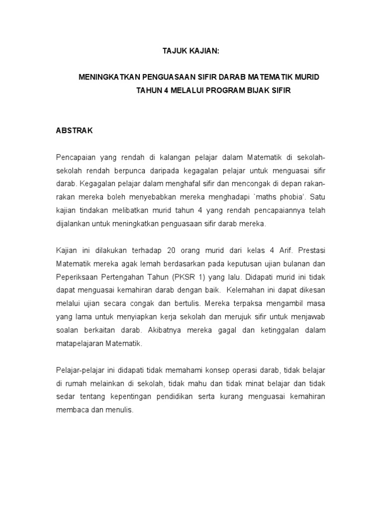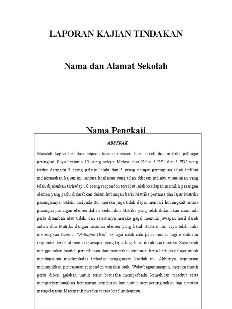 Laporan Kajian Tindakan Matematik Smk Pdf